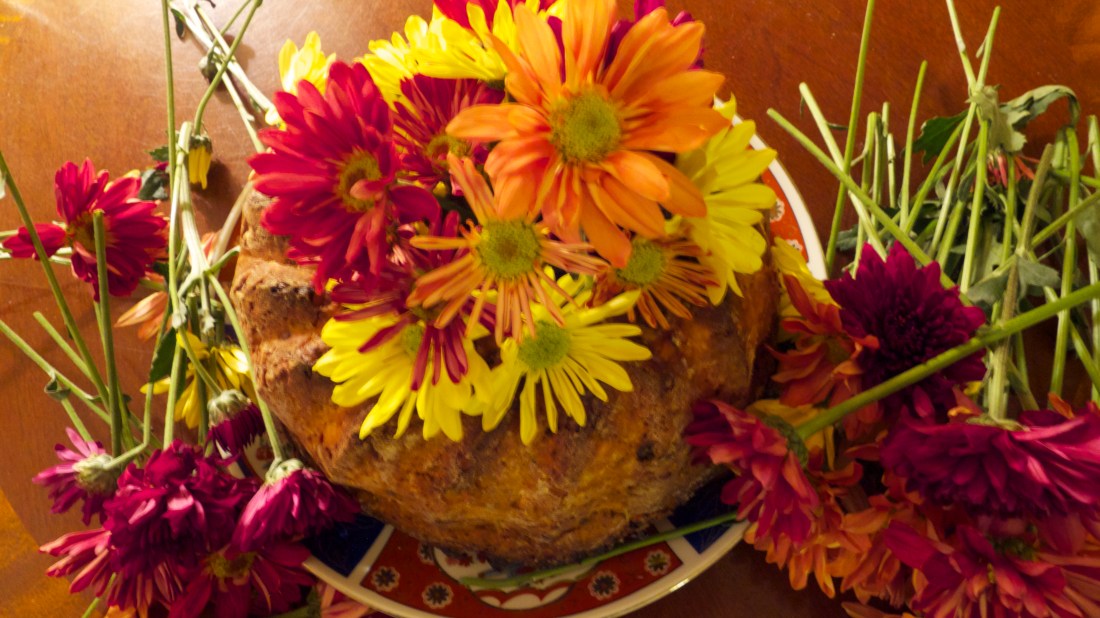 Polenta cake with mazzolin di fiori – baked, arranged and photographed by Wendy Tiefenbacher